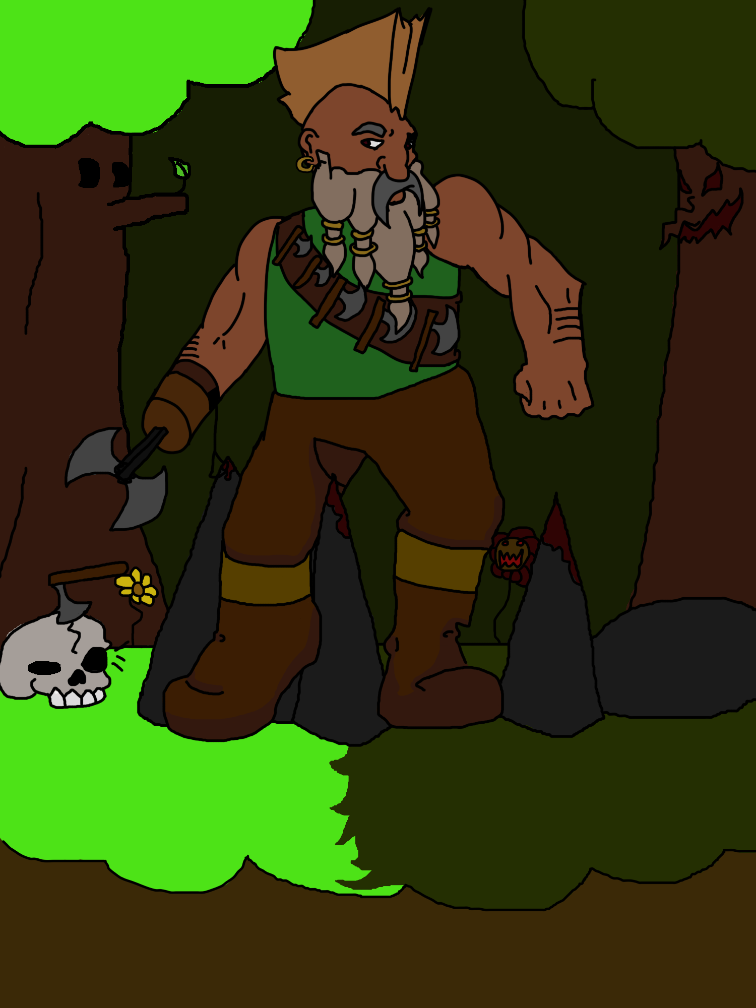 Un prototipo temprano de un juego sobre un enano destruyendo el mal.